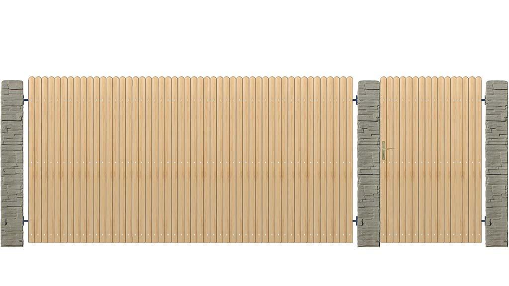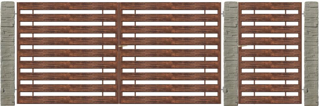 A fa-borítású kapuk erős, zárt szerkezetűek, melyekre borovi fenyőből készült fa lecek kerülnek rögzítésre. A lécek sűrűsége az Ön igényeihez igazodva változhat, lehet szinte teljesen zárt vagy nyitottabb jellegű is. Kisebb-nagyobb, eltérő méretű hézaggal is rendelhetőek.